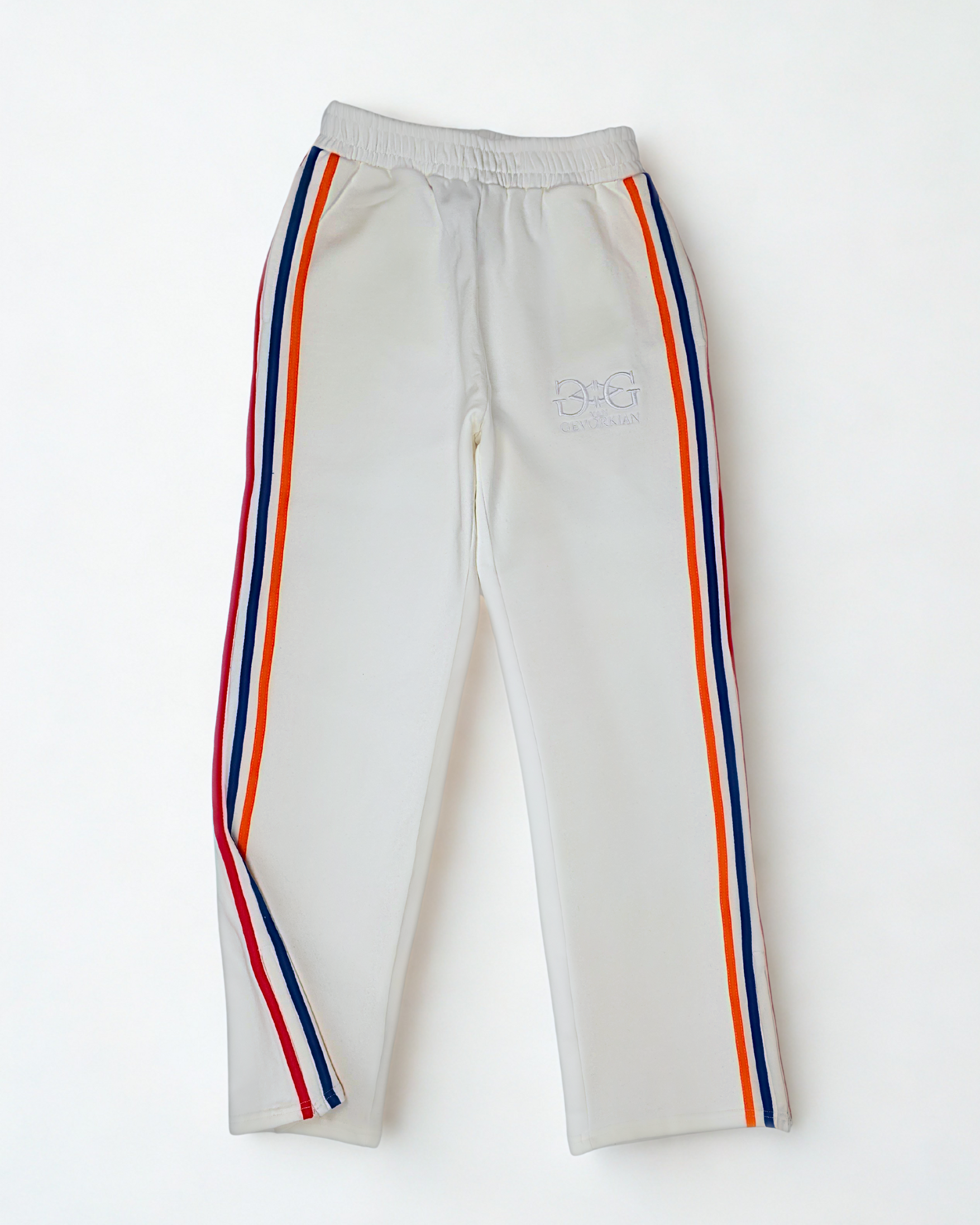 Crafted from heavyweight 380 GSM French Terry, 100% premium cotton, this oversized Pants blends cultural detail with refined luxury. Featuring a 3D embroidered van Gevorkian logo on the front, it represents strength and identity in every stitch. while the legs are defined by tricolor woven stripes in red, blue and orange for a bold yet timeless accent. Woven ribbing ensures structure, durability and lasting comfort.