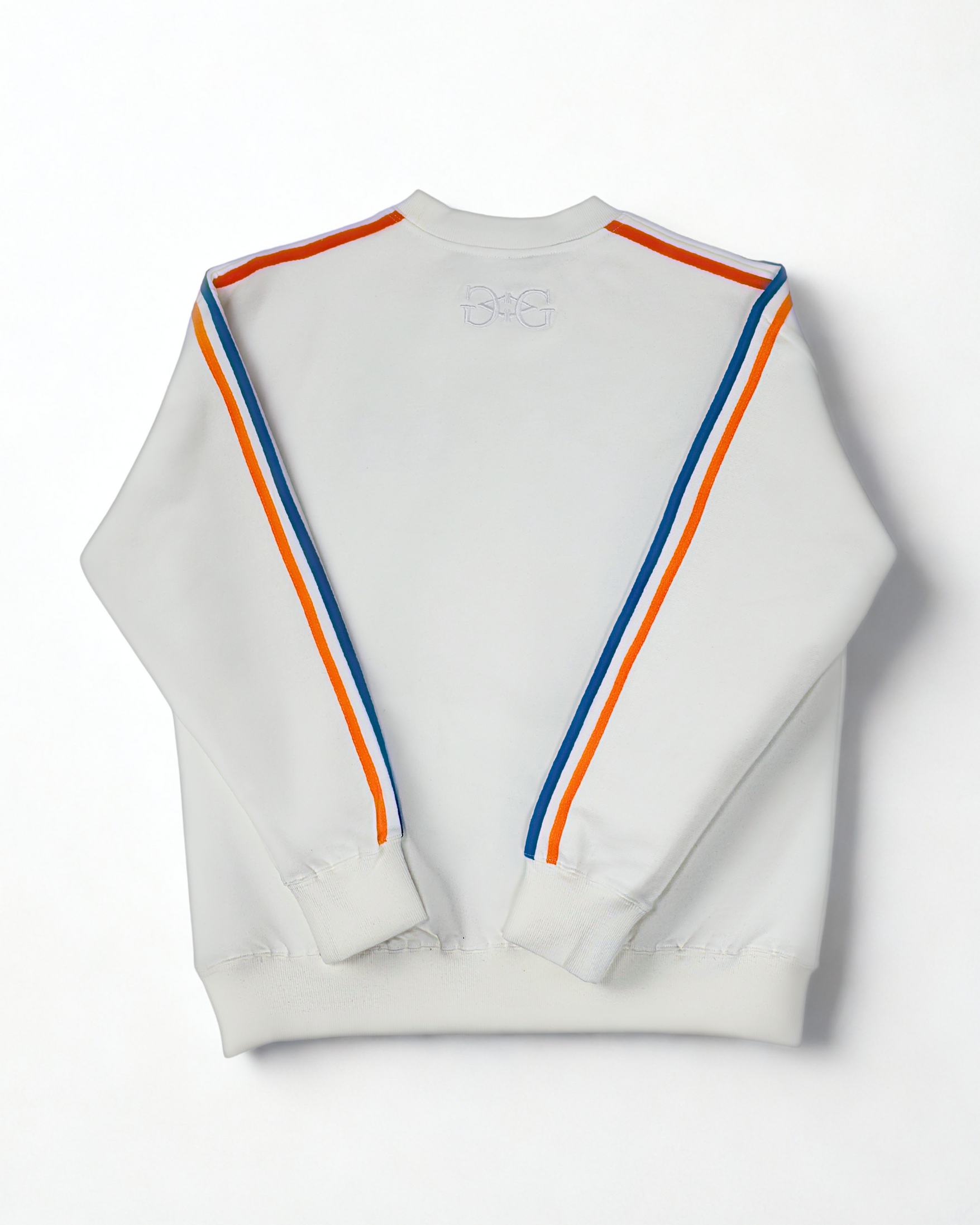 Crafted from heavyweight 380 GSM French Terry, 100% premium cotton, this oversized sweater blends cultural detail with refined luxury. Featuring a 3D embroidered van Gevorkian logo on the chest and a bold 3D vG emblem on the back, it represents strength and identity in every stitch. The sleeves are finished with three woven stripes in red, blue and orange, creating a distinctive tricolor accent. Woven ribbing ensures structure, durability and lasting comfort.